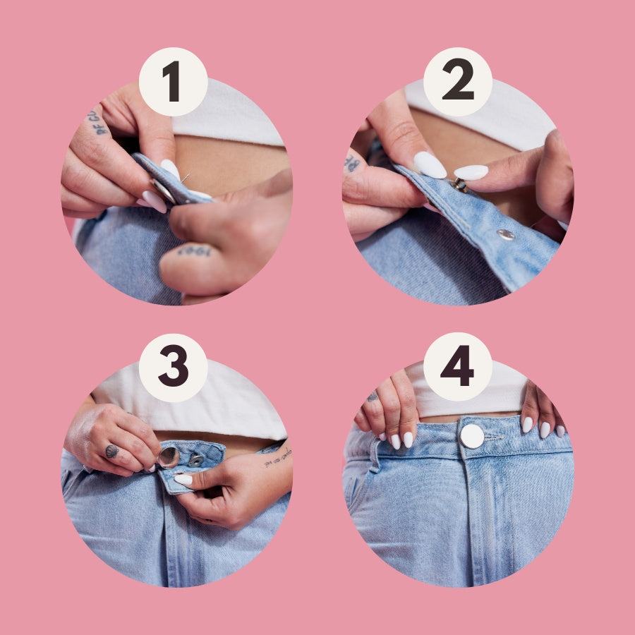 Botão mágico que ajusta suas calças em segundos, sem precisar de costureira. Remove fácil, sem danos e serve em qualquer tamanho.