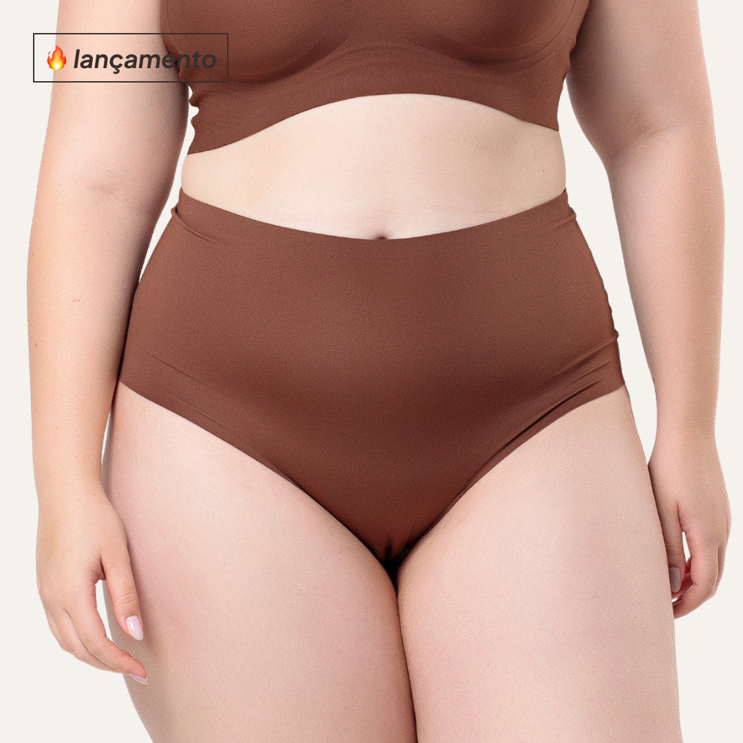 Calcinha de cós alto segunda pele que possui toque suave, garante absorção de umidade e propriedades antibacterianas.