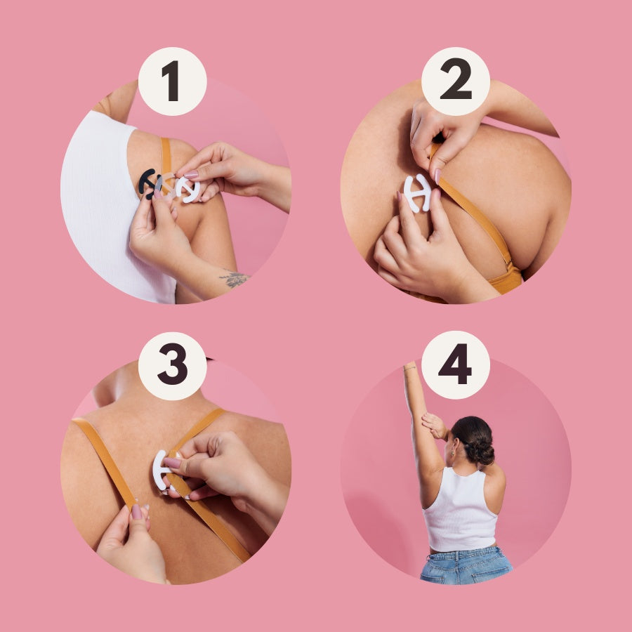 Clipe ajustador de sutiã, que ajusta a alça do sutiã em segundos, possibilitando o uso de diversos looks sem aparecer o sutiã. Esconda a alça do sutiã de maneira rápida e para qualquer tamanho de sutiã.